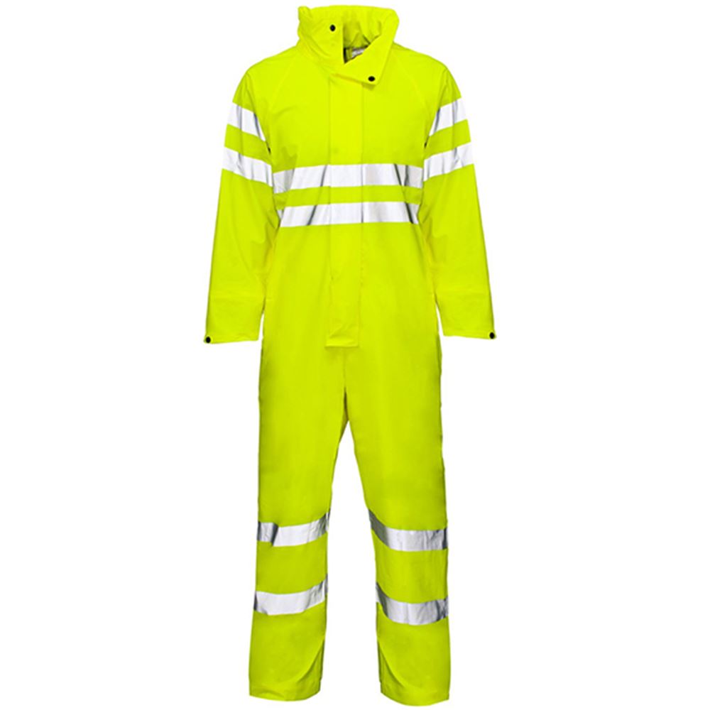 - Waterproof, lightweight and breathable yellow high visibility coverall
