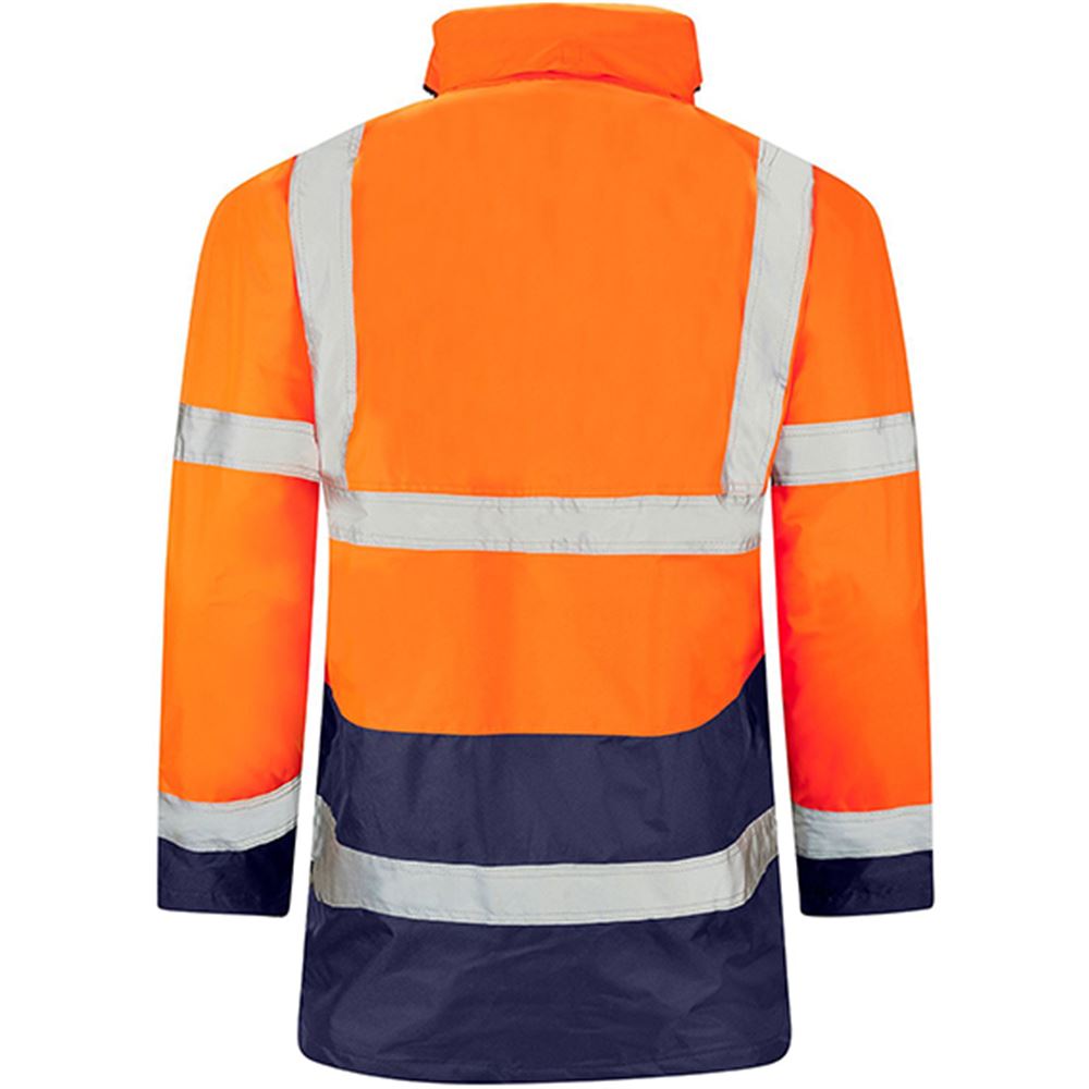 - Warm and durable two tone hi vis orange/navy waterproof parka jacket