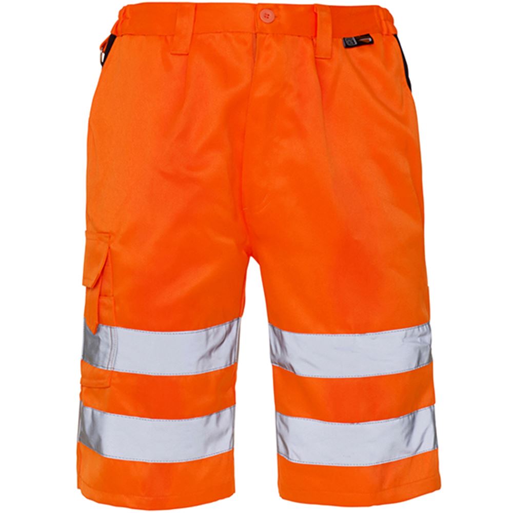 - Durable polycotton hi-vis orange shorts, ideal for warm weather outdoor activities