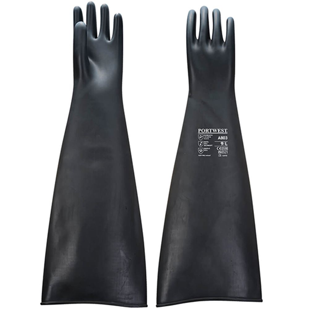 Portwest A803 Heavyweight Latex Rubber Chemical Resistant Gauntlet Gloves 60cm