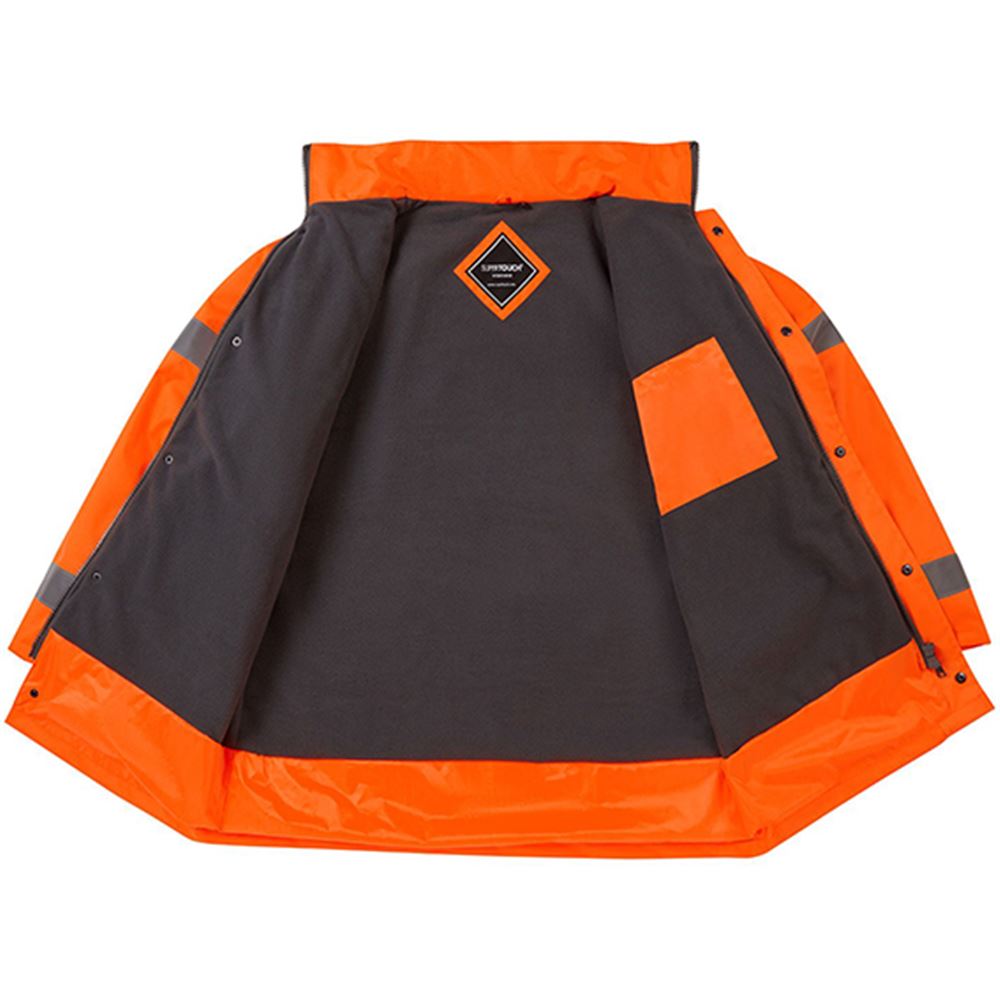 - Warm and dependable orange hi vis waterproof and fleece lined padded parka jacket