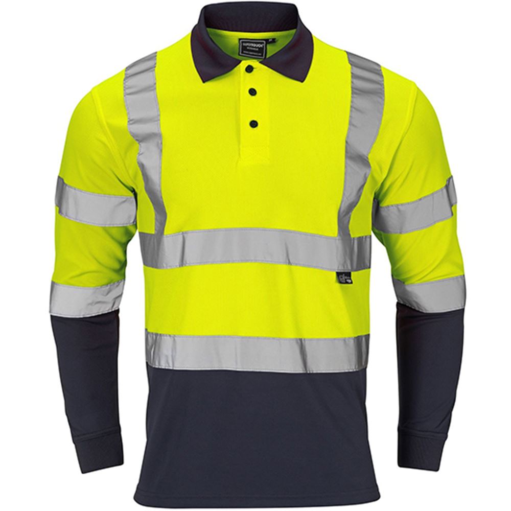 - Supertouch hi-vis yellow/navy two tone long sleeve polo shirt