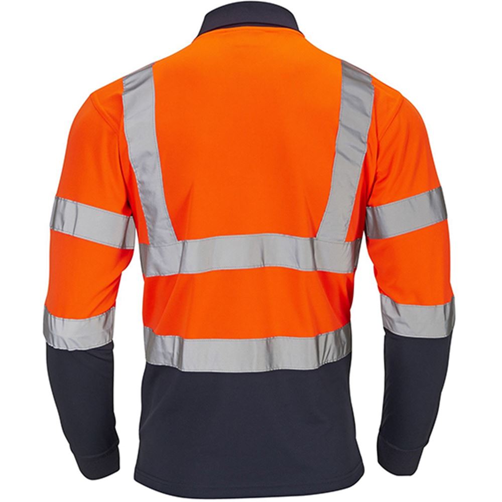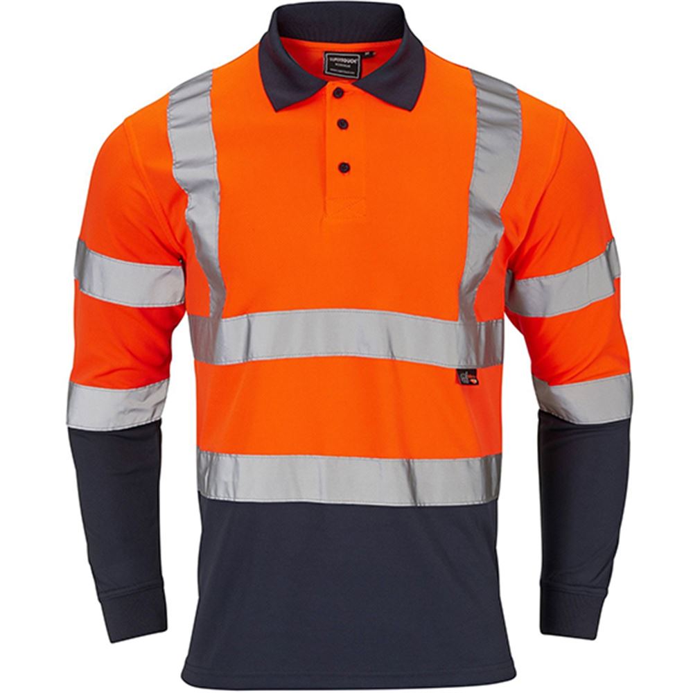 - Supertouch hi-vis orange/navy two tone long sleeve polo shirt