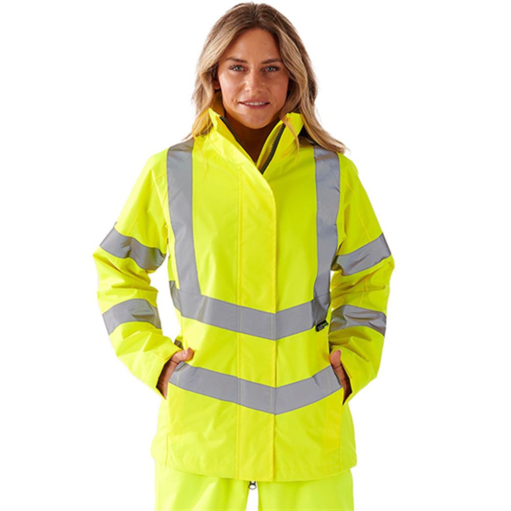 - Lightweight and durable women's waterproof yellow hi vis jacket