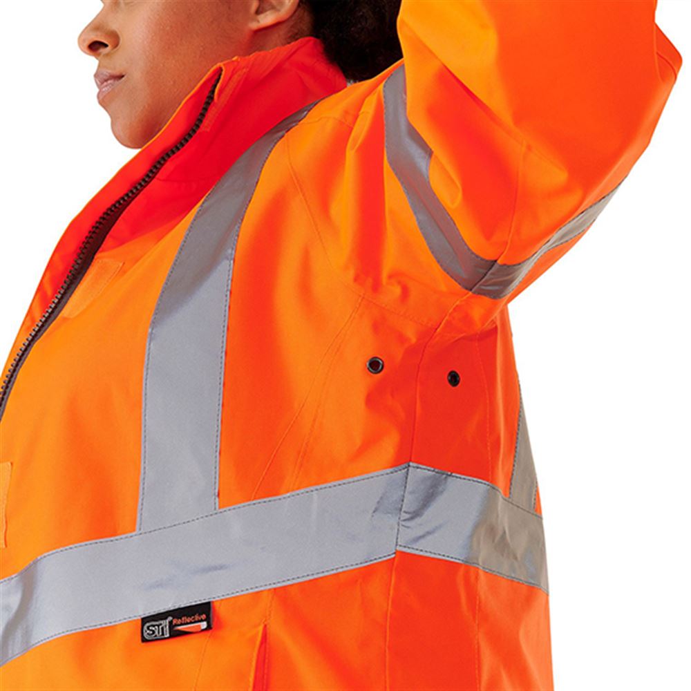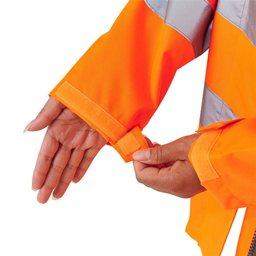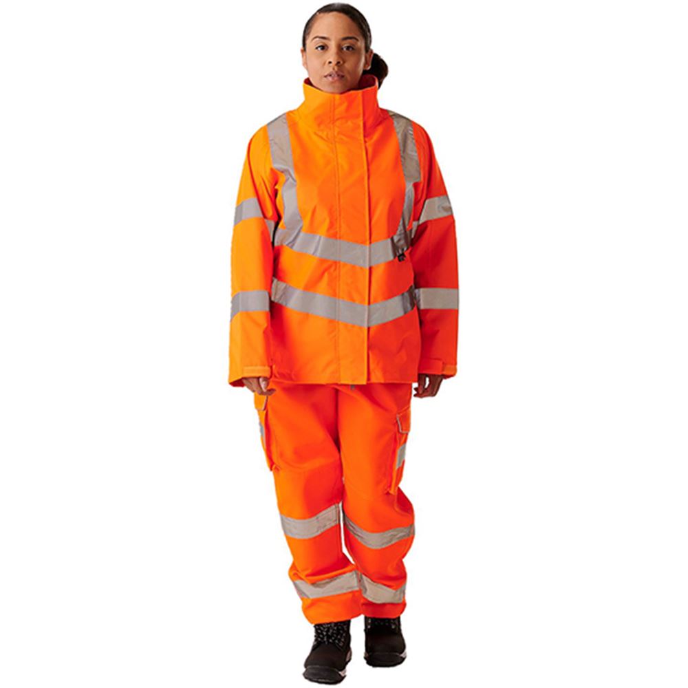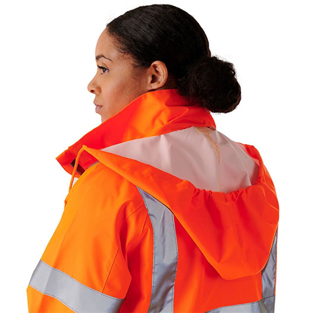 - Lightweight and durable women's waterproof RIS orange hi vis jacket