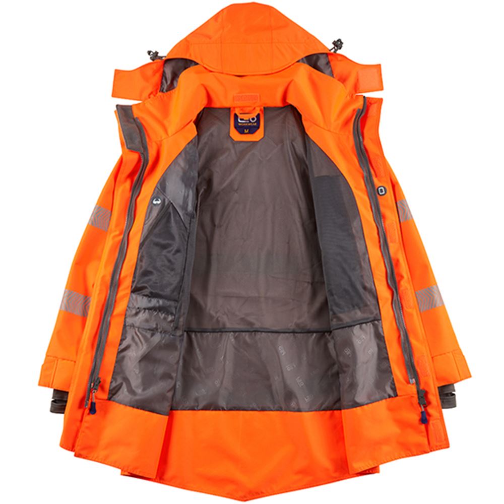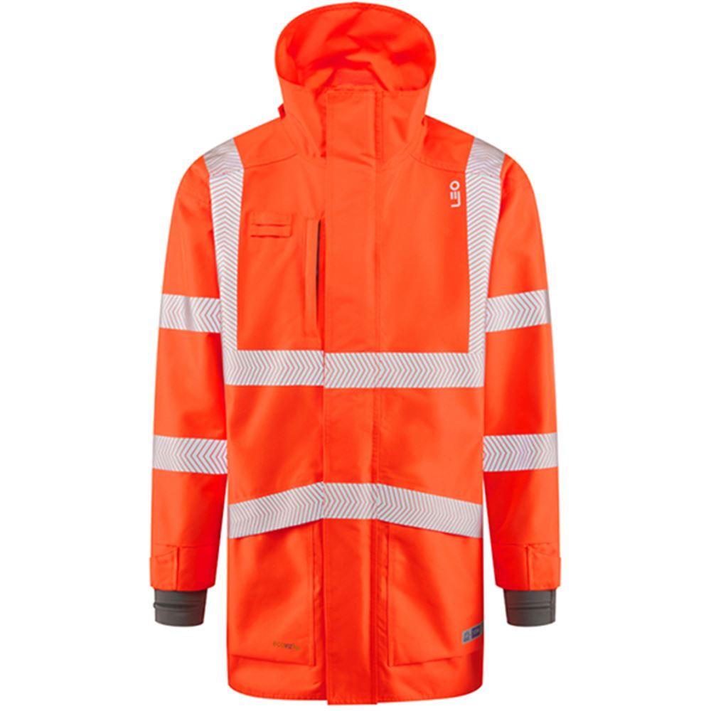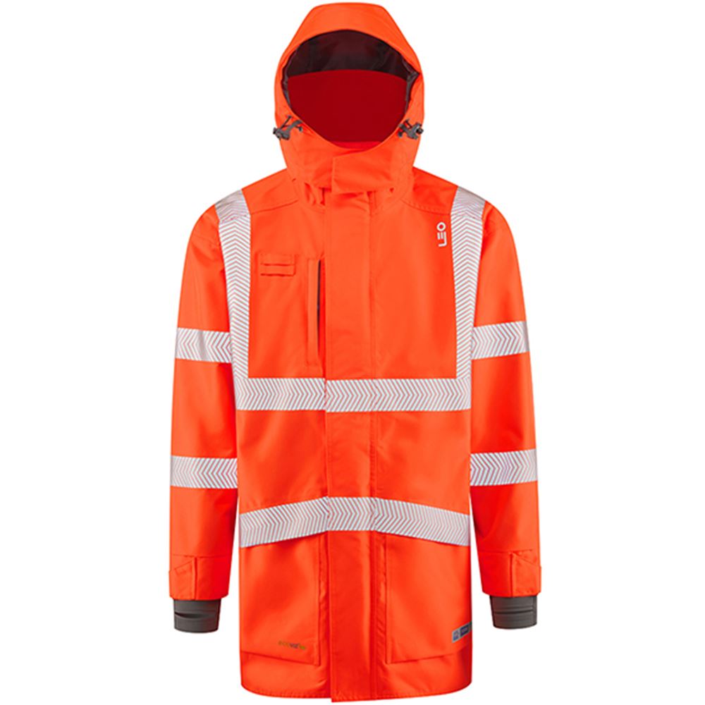 Leo Workwear Clovelly Rail Orange 15K Performance+ Waterproof Breathable Executive Hi Vis Jacket