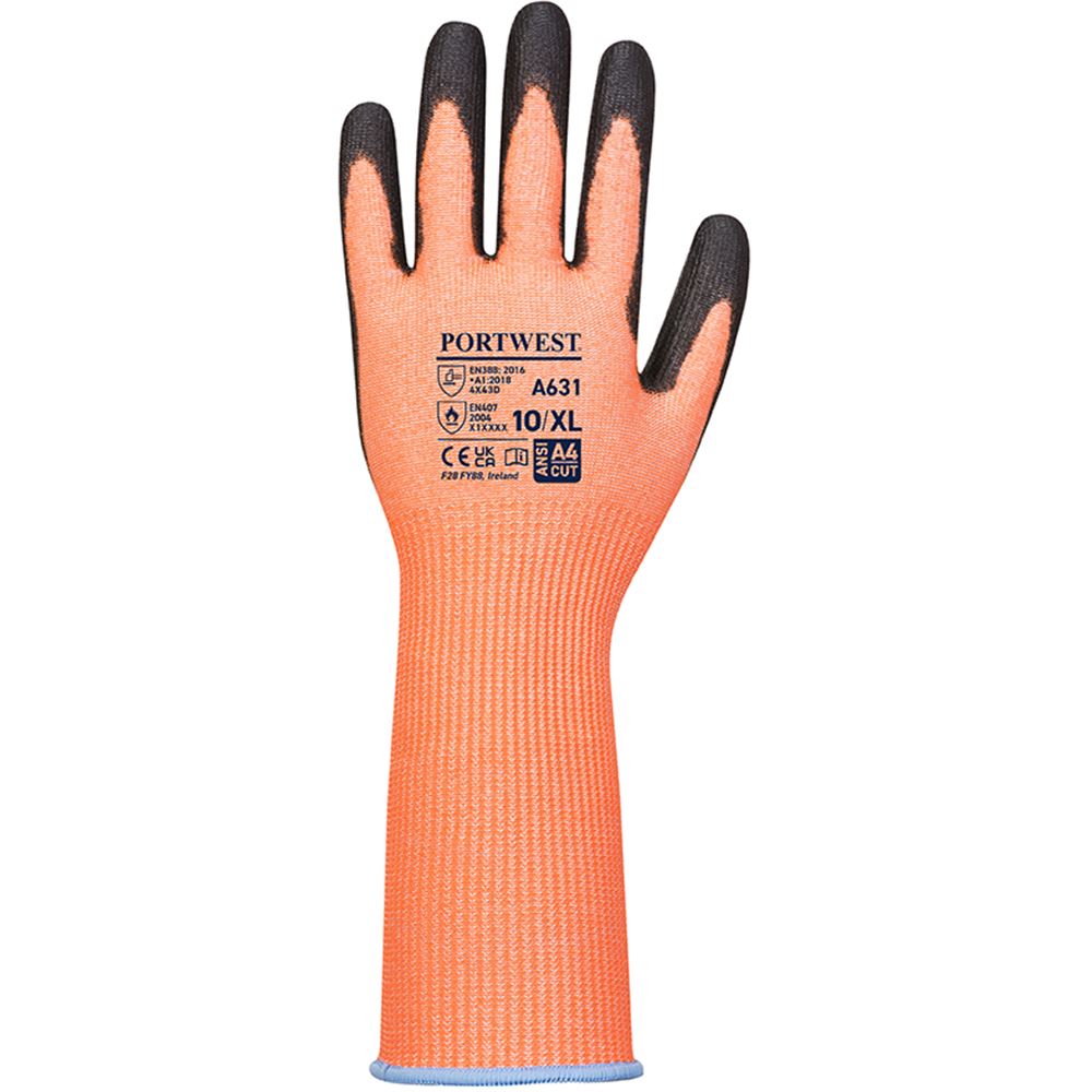 Portwest A631 Vis-Tex Cut D Long Cuff Glove with PU Palm Coating - 13g