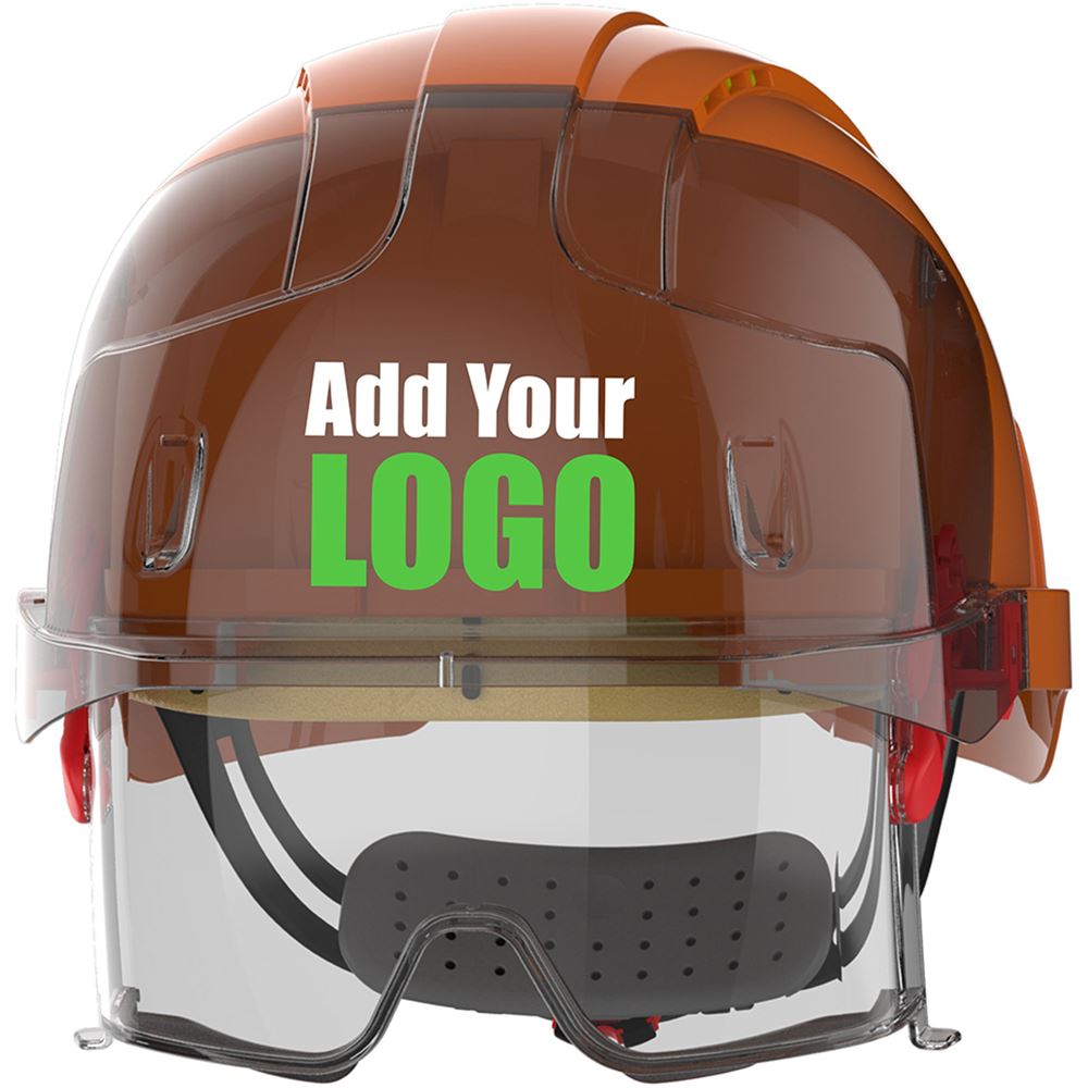 JSP EVO VISTAlens Custom Printed Safety Helmet with Integrated Eyewear - Vented - Wheel Ratchet