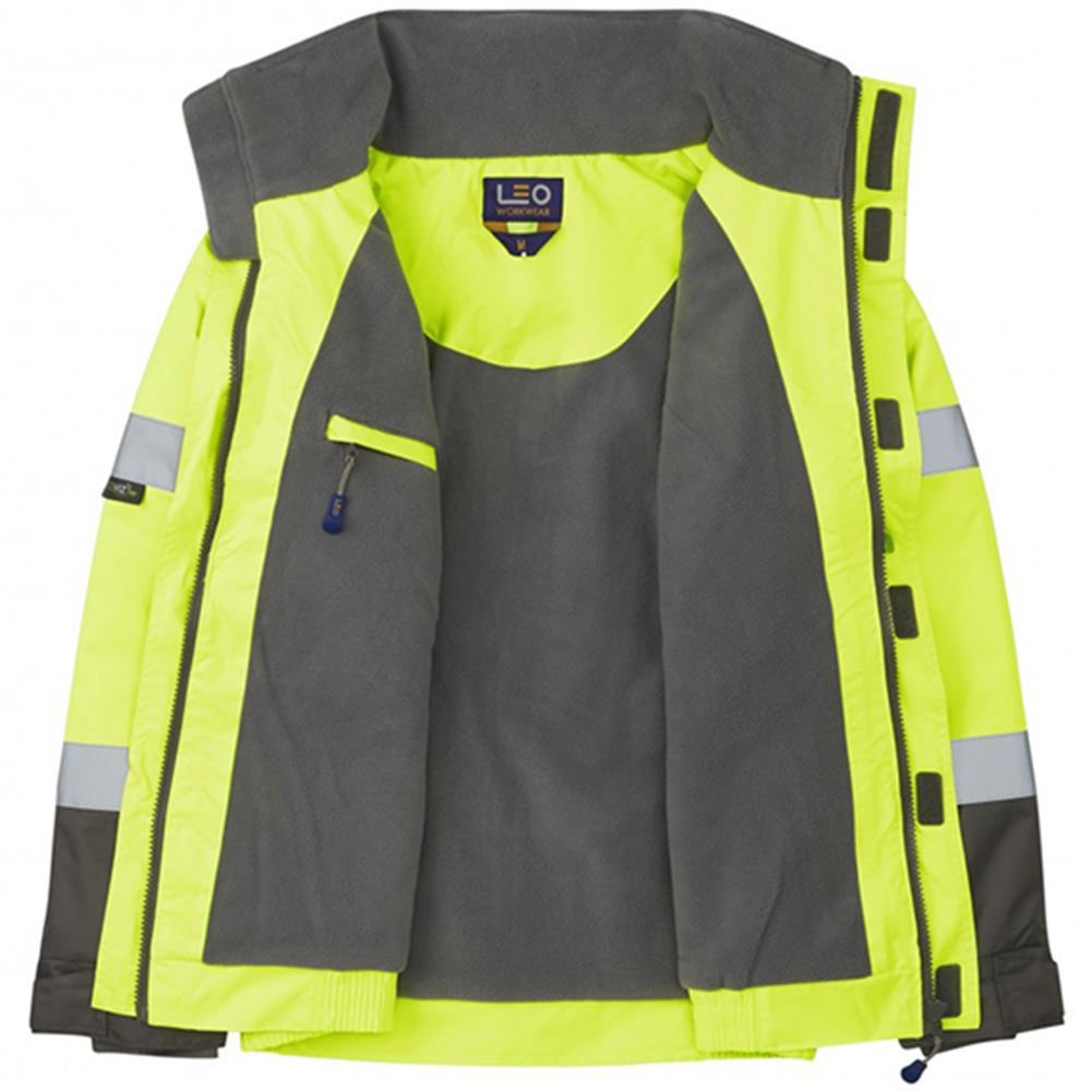 Leo Workwear Bickington Yellow EcoViz 4K Superior Fleece Lined Waterproof Hi Vis Bomber Jacket