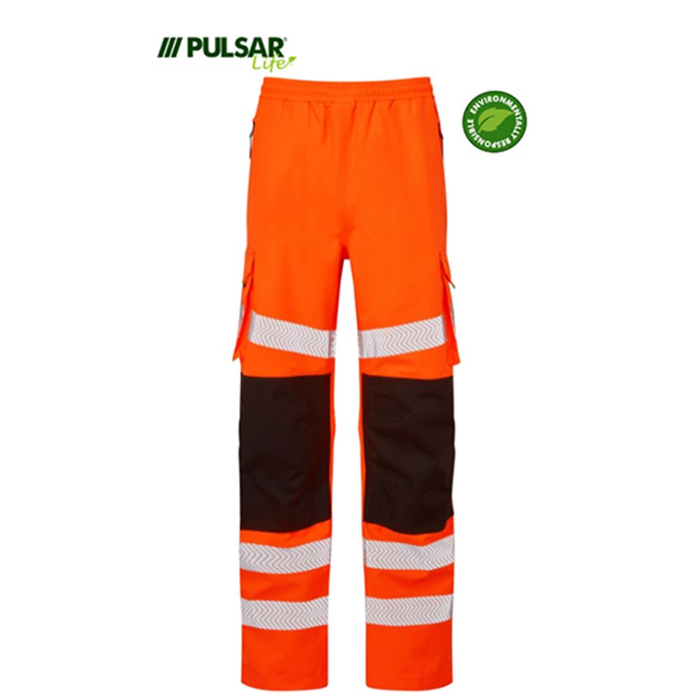Pulsar Life LFE907 Rail Orange GRS Recycled Waterproof Hi Vis Overtrouser