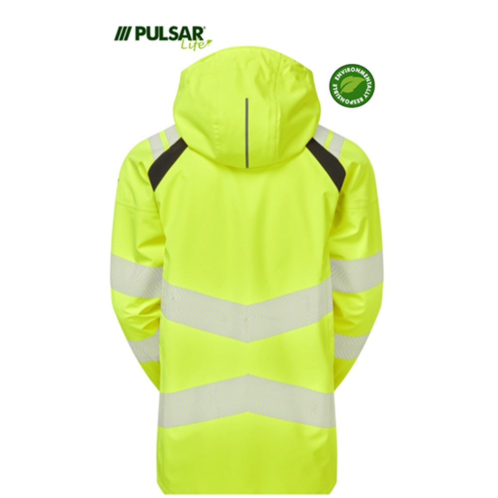 Pulsar Life LFE909 Yellow GRS Recycled Waterproof Breathable Hi Vis Shell Jacket