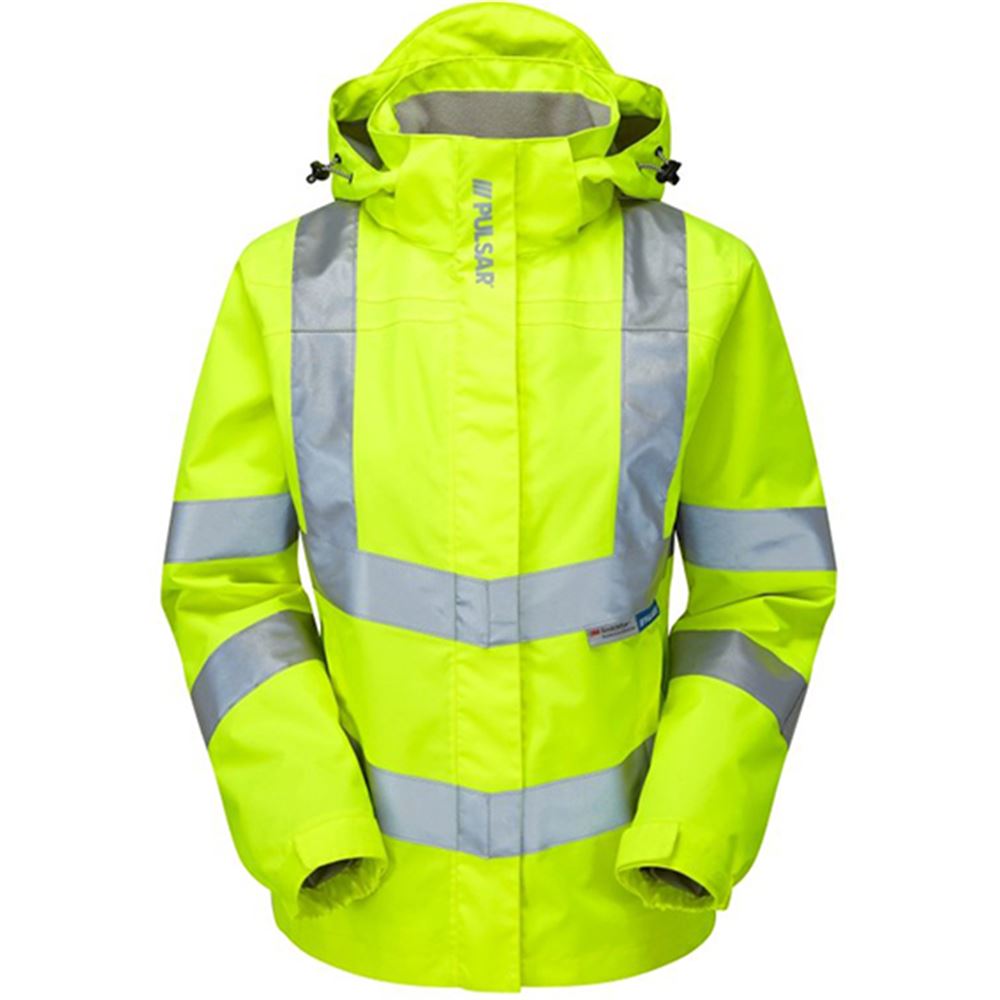Pulsar P704-R Yellow GRS Recycled Women's Mesh Lined Waterproof Hi Vis Storm Jacket