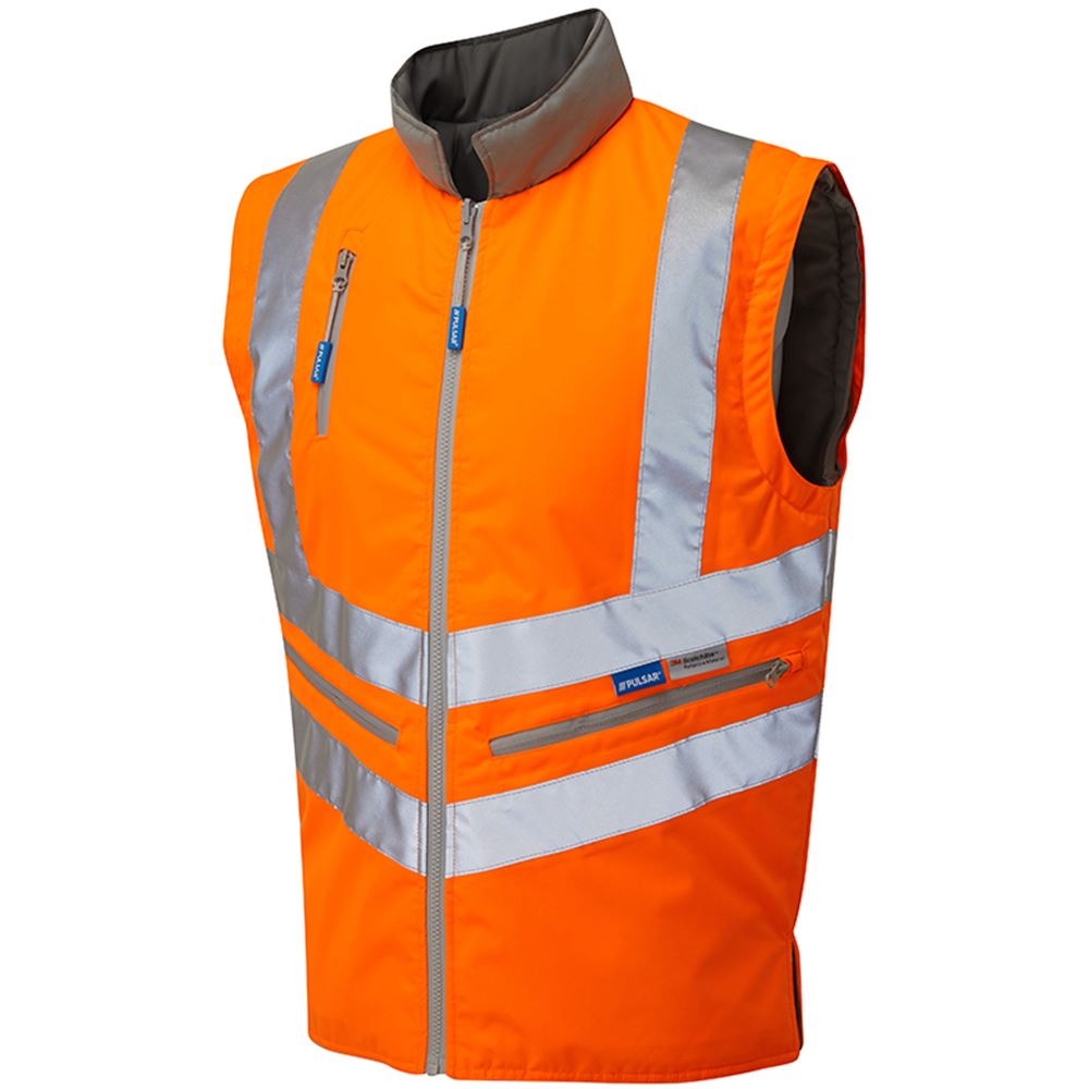 Pulsar PR498-R GRS Recycled Rail Orange Sleeved Hi Vis Bodywarmer