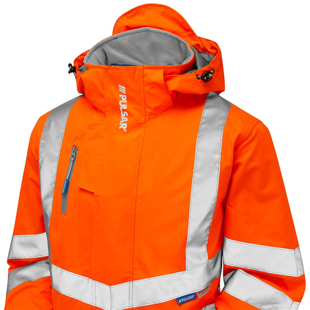 Pulsar PR499-R Rail Orange GRS Recycled Mesh Lined Waterproof Hi Vis Storm Jacket