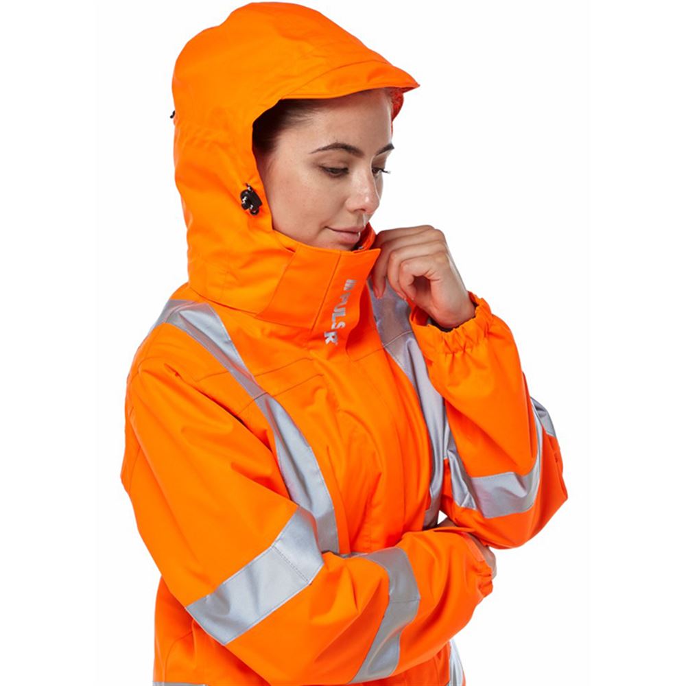 - Pulsar PR705-R Rail Orange GRS Recycled Women's Mesh Lined Waterproof Hi Vis Storm Jacket
