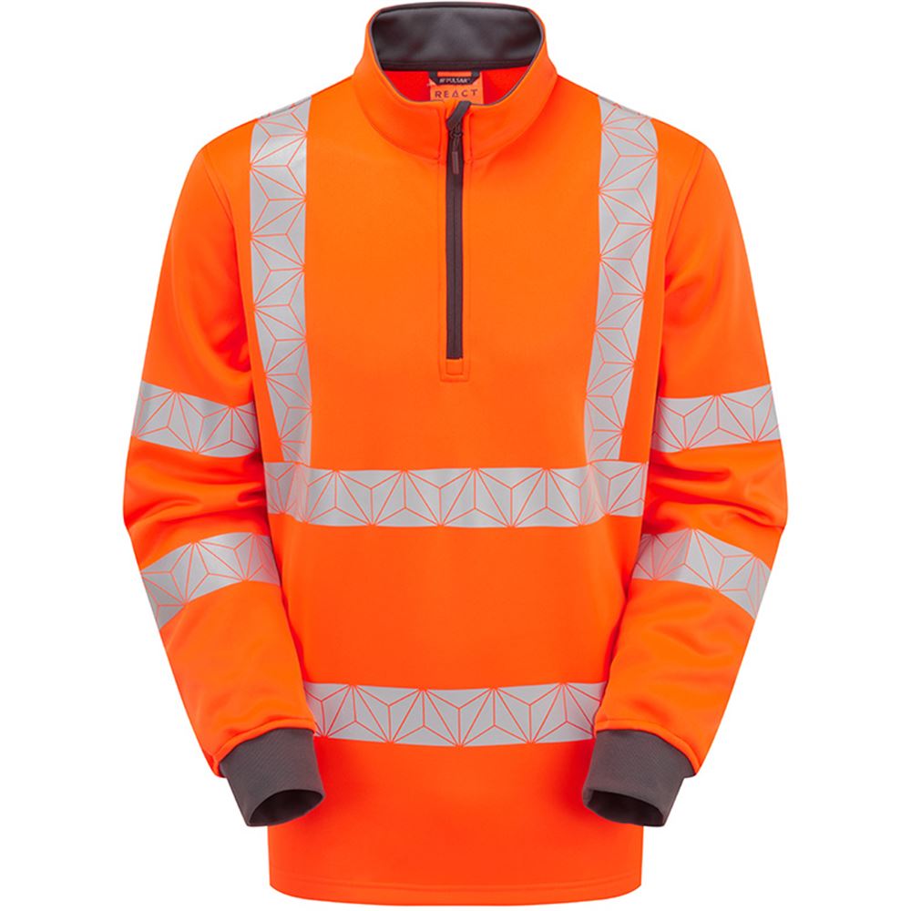 Pulsar React RCT805 Rail Orange Recycled Quarter Zip Hi Vis Sweatshirt