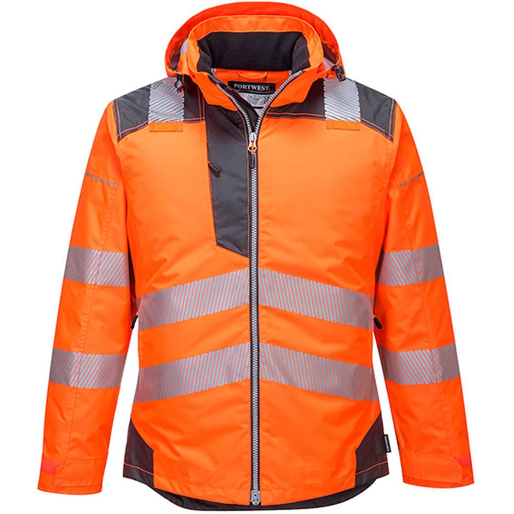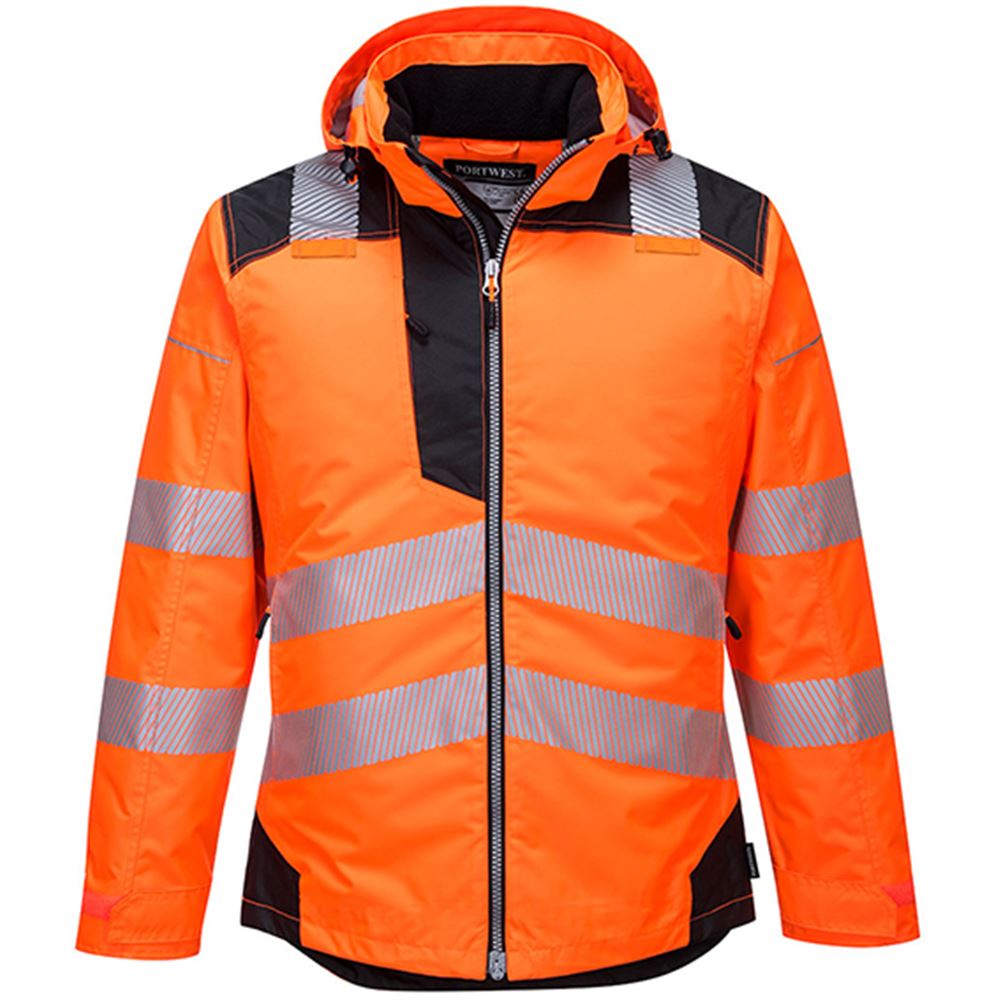 • Portwest T400 PW3 Orange/Black Padded Waterproof Hi Vis Winter Jacket