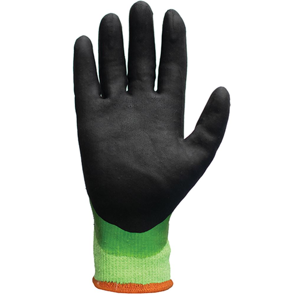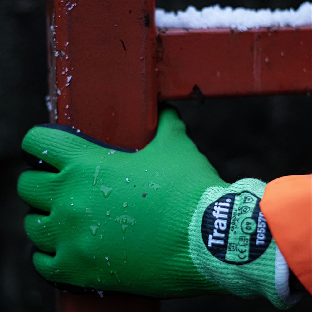 TraffiGlove TG5570 X-DURA Cut F Nitrile/Latex Palm Coated Thermal Water Resistant Green Gloves - 10g